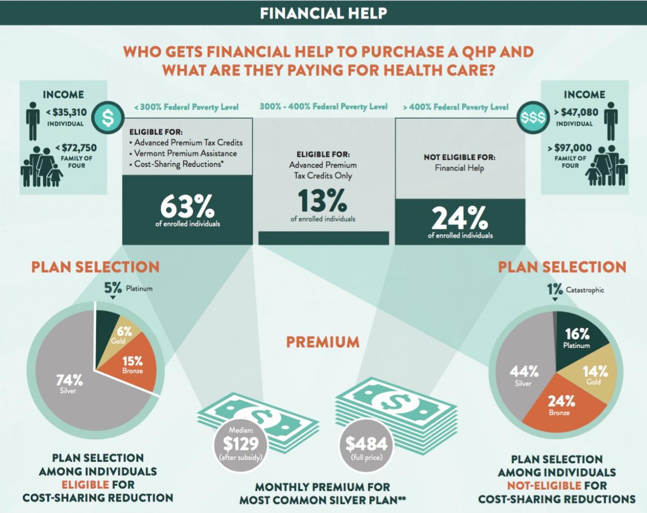 One other thing to remember about Vermont is that they (along with the District of Columbia) had a policy for the first couple of years of ACA exchange enrollment dictating that all individual (and small business) health insurance plans offered in the state must be sold through the ACA exchange. In other words, VT and DC didn't have any off-exchange ACA-compliant enrollment in those markets at all...which actually makes my job much easier in terms of tracking enrollees, since the exchange numbers are far more transparent than off-exchange data is in the other 49 states.