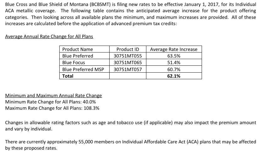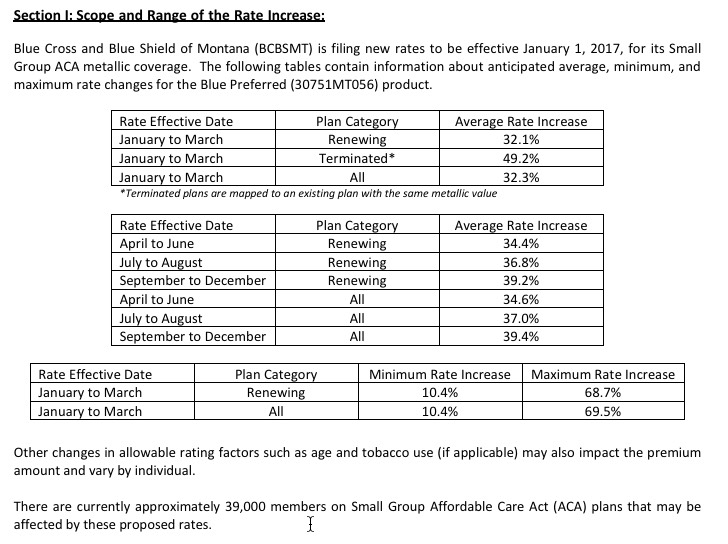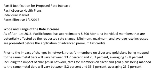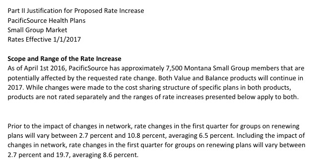 As for the actual requested rate hikes...ouch. BCBS is seeking a whopping 62% average increase, and since they own 70% of the individual market, that means a statewide weighted average of right around 50% even. Things aren't as ugly on the small group market, but that 27.5% average is still pretty ugly.
