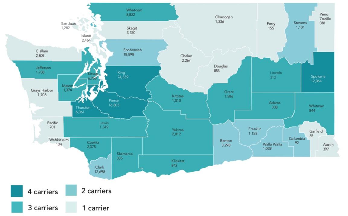 - There are 5 counties that have 40% or more of their population covered by Washington Healthplanfinder (Adams, Okanogan, Yakima, Grant, and Pacific)