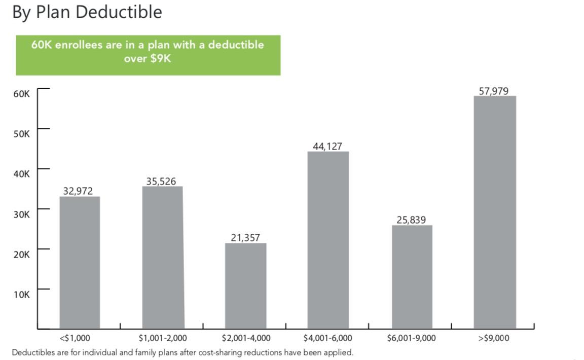 • Nearly 60,000 enrollees are in a plan with a deductibe over $9,000