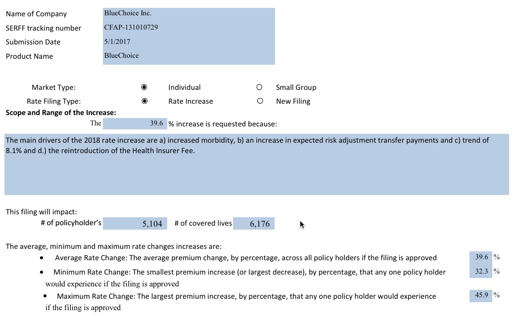 It's important to note, again, the impact that uncertainty about things like CSR reimbursements, enforcement of the individual mandate penalty and so forth by the Trump administration are having on these rate increase requests. Note that "increased morbidity" is listed as the number one factor in these hikes on the individual market by CareFirst...which is also asking for the highest rate increases.