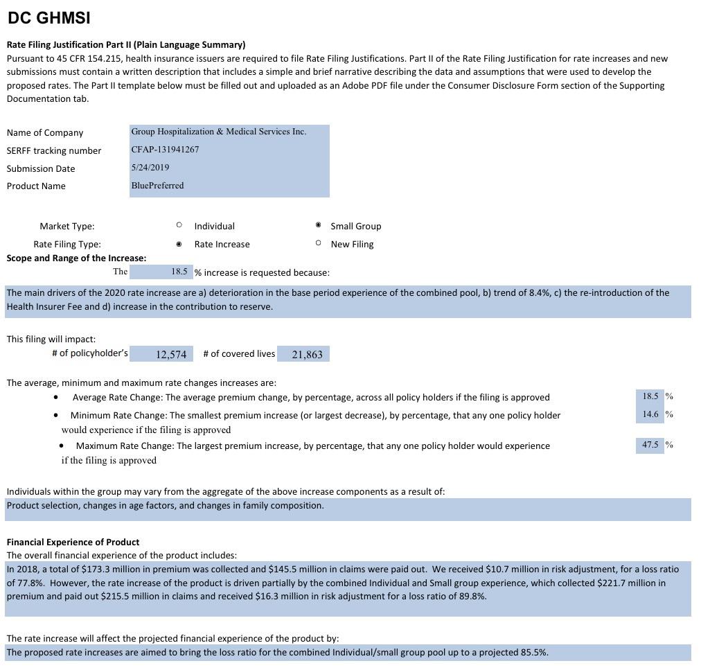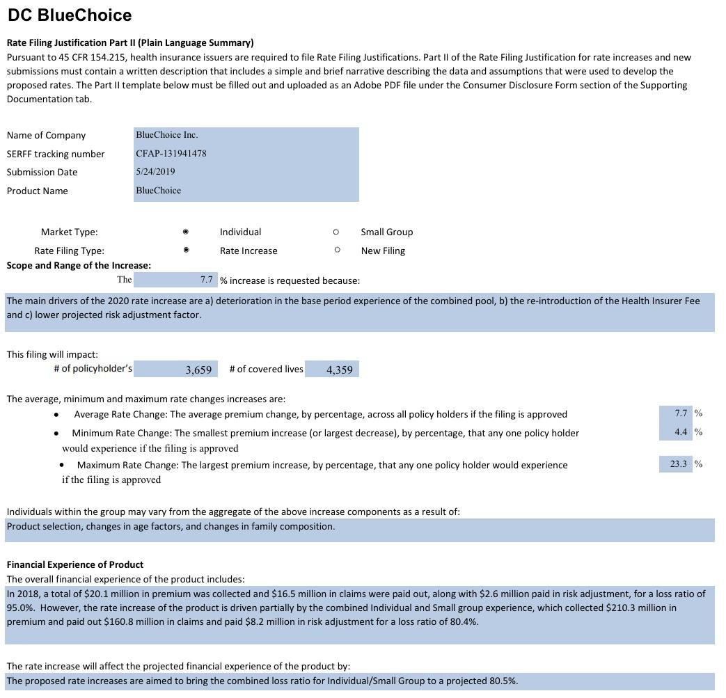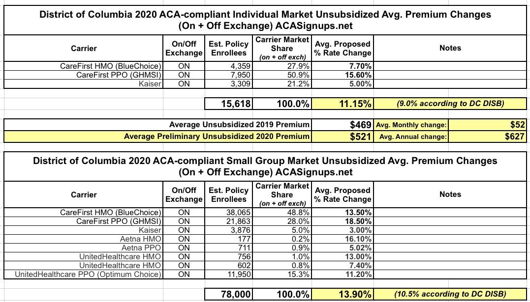 A week ago, the DC Dept. of Insurance, Securities and Banking (DISB) issued preliminary 2020 rate filings along with this press release: