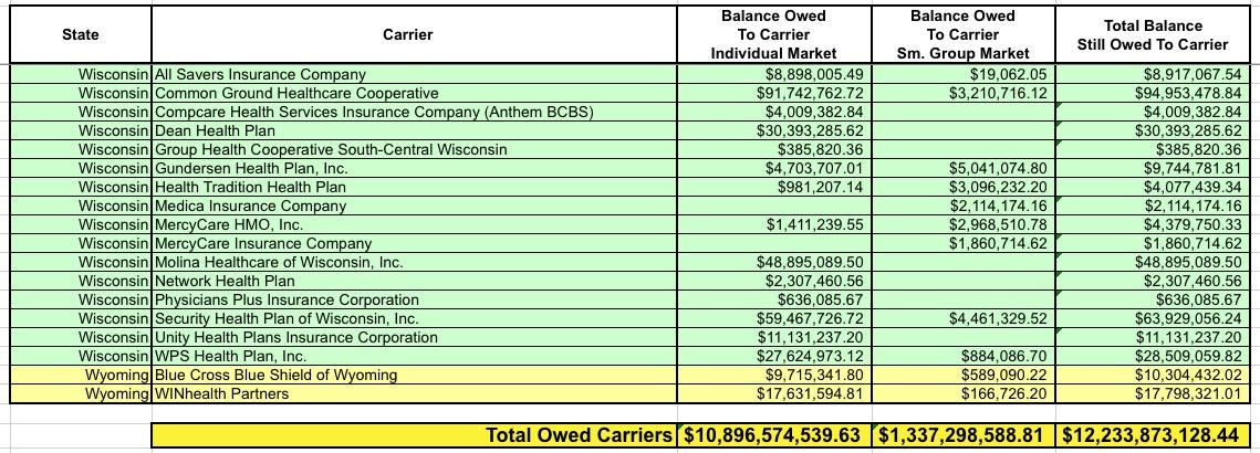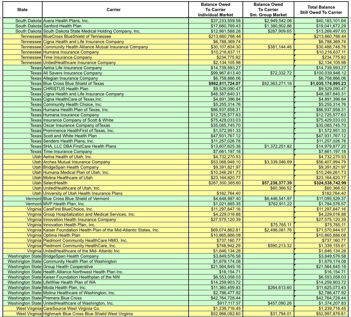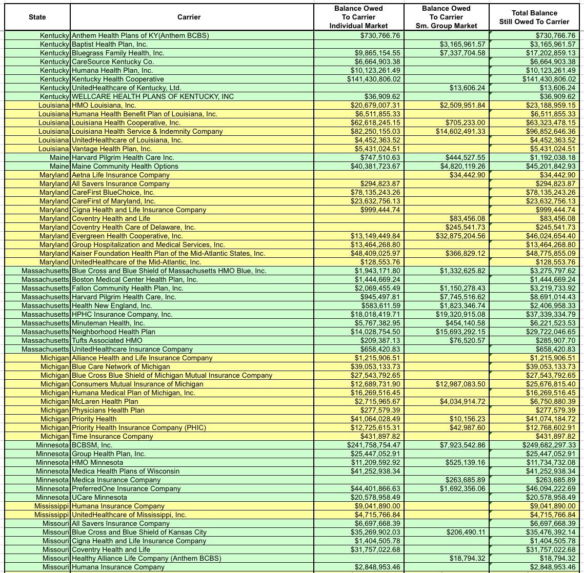 I noted earlier that a good twenty or so carriers have actually gone bankrupt...including Health Republic of NY. I assume their risk corridor payment would go to pay back the creditors. A few others have merged with or been acquired by other carriers; I have no idea how that will be handled.