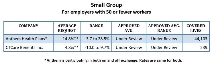 Two carriers – Anthem and ConnectiCare Benefits Inc. (CBI) – have filed rates for both individual and small group plans that will be marketed through Access Health CT, the state-sponsored health insurance exchange.