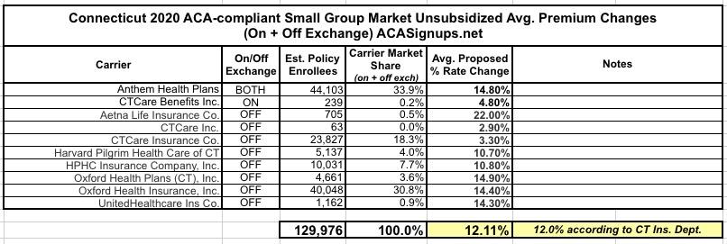 Connecticut: PRELIMINARY avg. 2020 #ACA exchange premiums: 7.8% increase