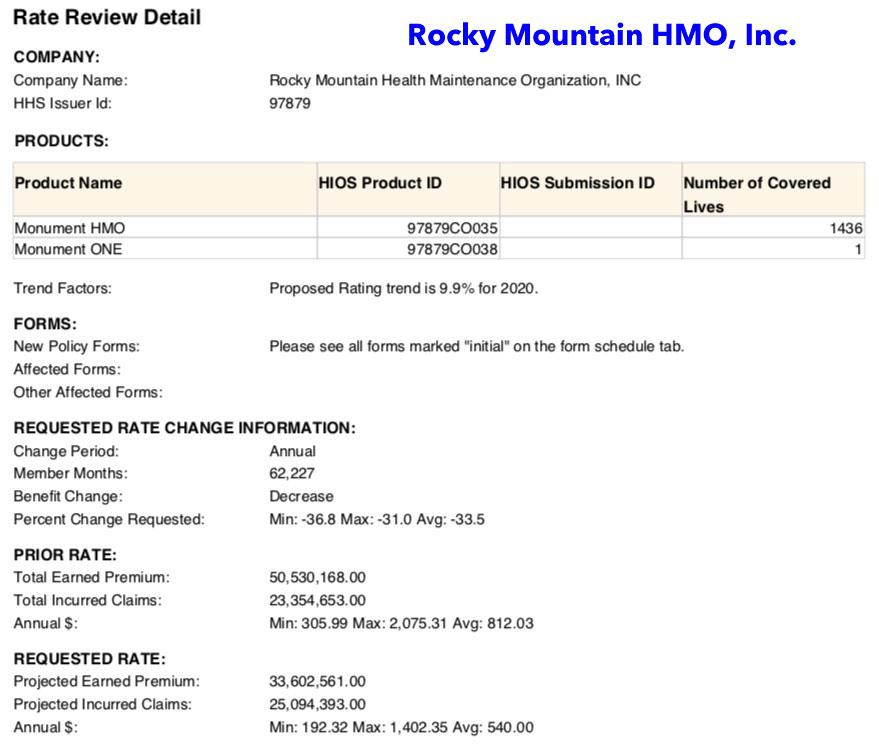 The information below on the companies, plans and requested premium changes is preliminary, and only reflects what the companies have requested, not the final approved plans for 2020. The final, approved plans for 2020 will be made available later this year in late summer / early fall. All of the preliminary 2020 facts and figures are available on the Division's webpage for Health Insurance Plan Filings. Colorado consumers can file formal comments on these plans through August 5.