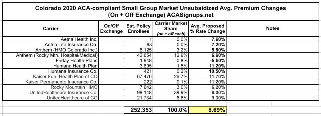 Colorado: Preliminary avg. 2020 #ACA exchange premiums: 18.2% *decrease* with reinsurance, 0.5% increase without it
