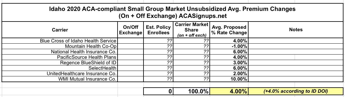 Idaho: *Preliminary* avg. 2020 ACA rate changes: 7.0% increase