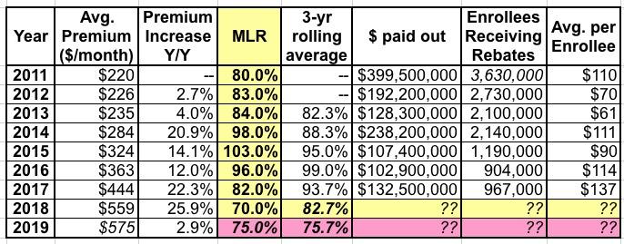 IMPORTANT UPDATES: My Half-Assed MLR Explainer, or How Much Will Be Rebated in 2019 & 2020?