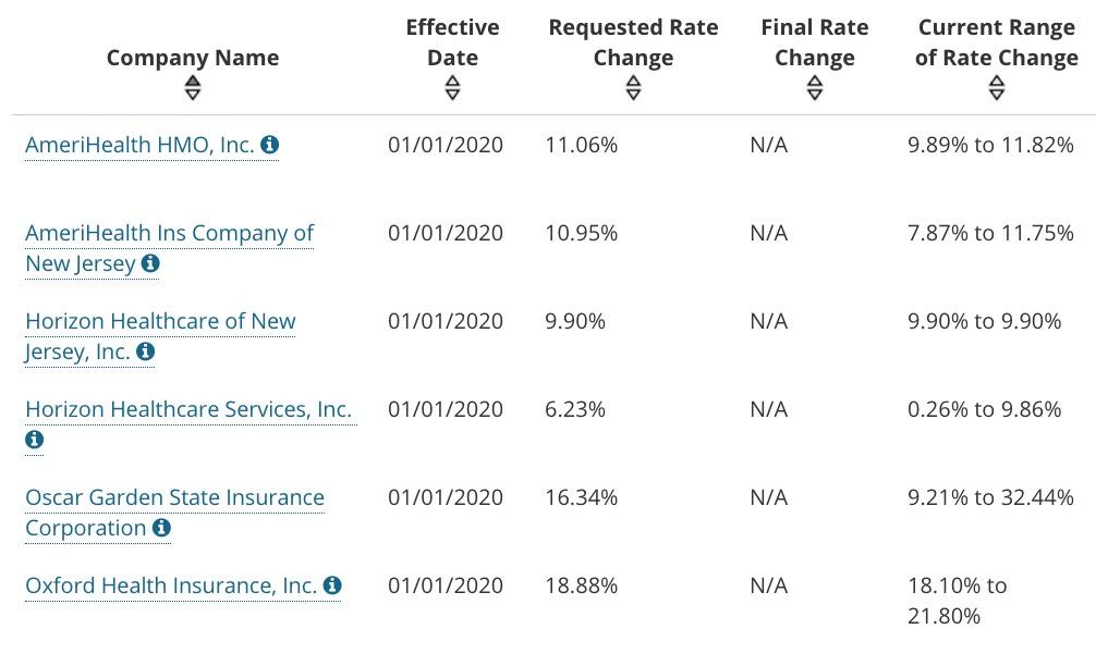 Meanwhile, New Jersey's small group carriers are requesting an unweighted average increase of 4.2%.
