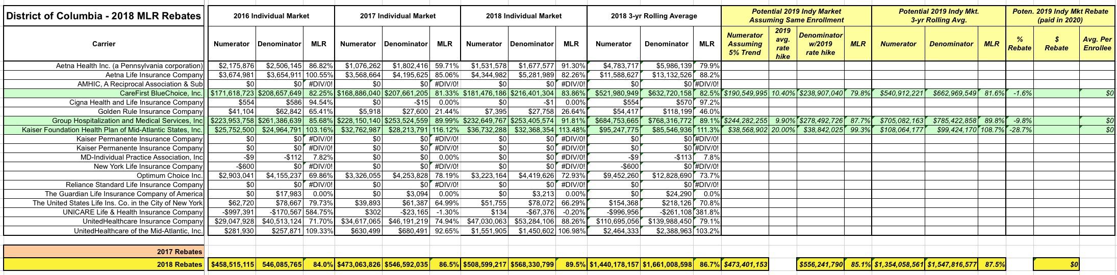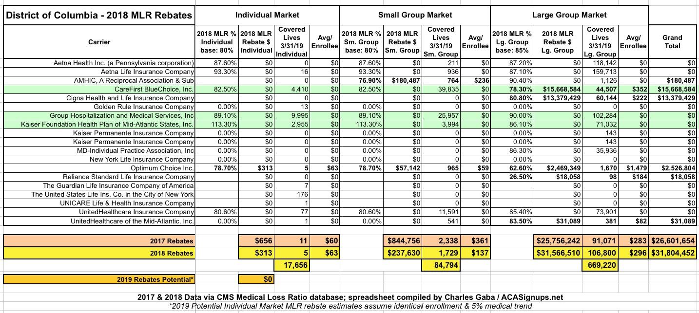Exclusive! District of Columbia: 2018 MLR Rebate Payments (& potential 2019 rebates)