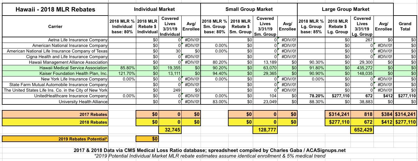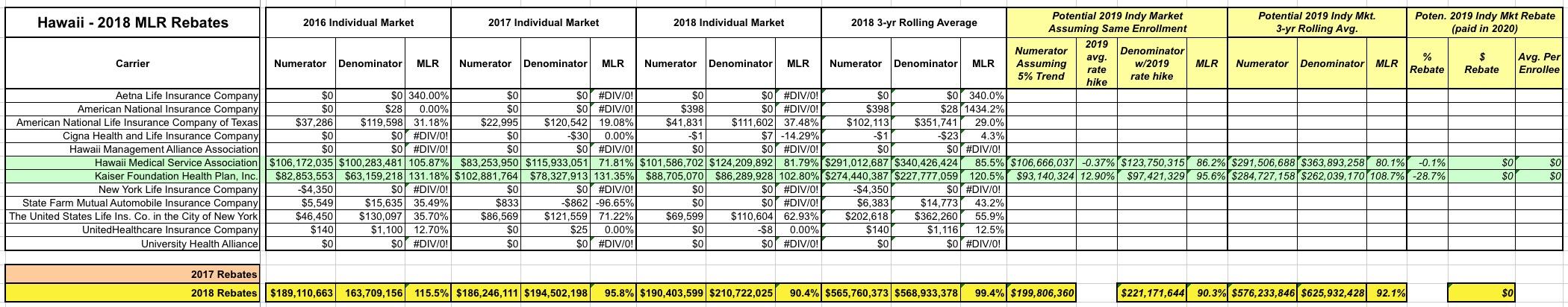 Exclusive! Hawaii: 2018 MLR Rebate Payments (& potential 2019 rebates)