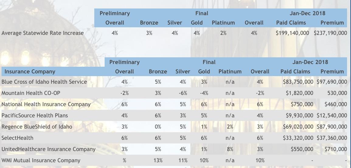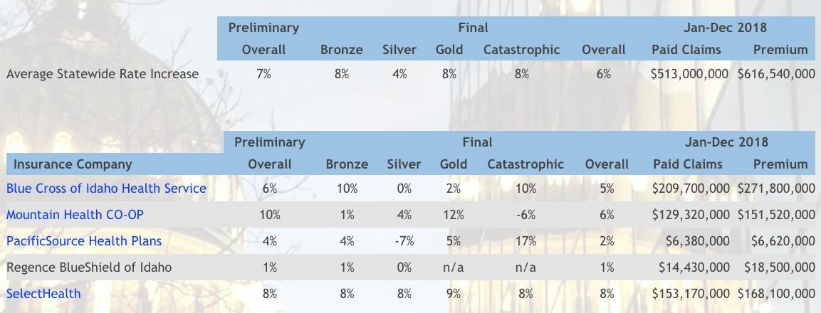 Idaho: *Final* avg. 2020 ACA rate changes: 6.0% increase