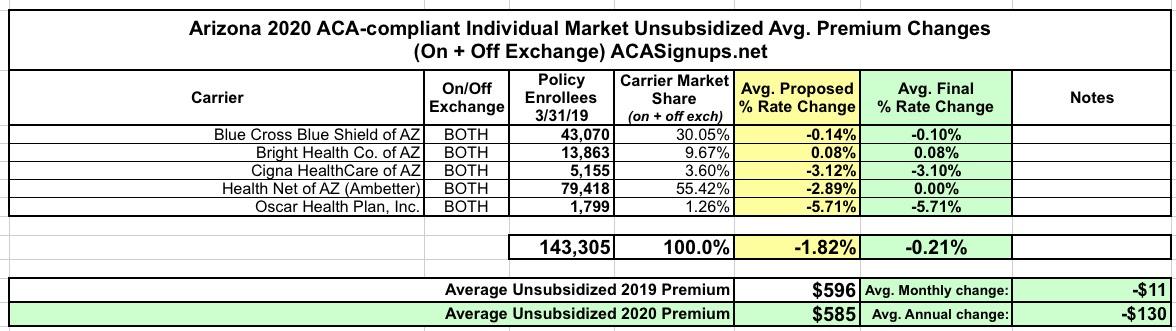 Arizona: *Final* avg. 2020 #ACA premium rate change: 0.2% *decrease*