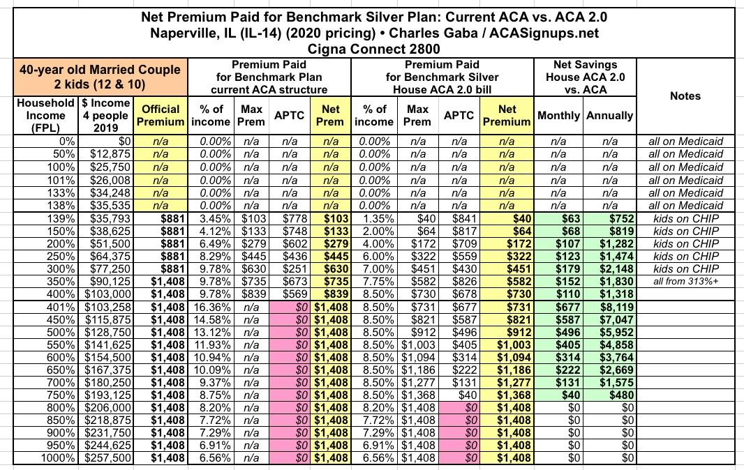 Under ACA 2.0, again, they'd pay no more than 8.5% in premiums, reducing their net premiums from $1,870/month down to as little as $480/month, a reduction of a whopping $16,600/year.