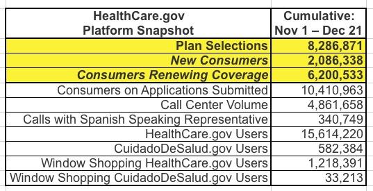 These snapshots provide point-in-time estimates of weekly plan selections, call center activity and visits to HealthCare.gov or CuidadoDeSalud.gov. The final snapshot reports new plan selections, active plan renewals and automatic enrollments. It does not report the number of consumers who paid premiums to effectuate their enrollment.