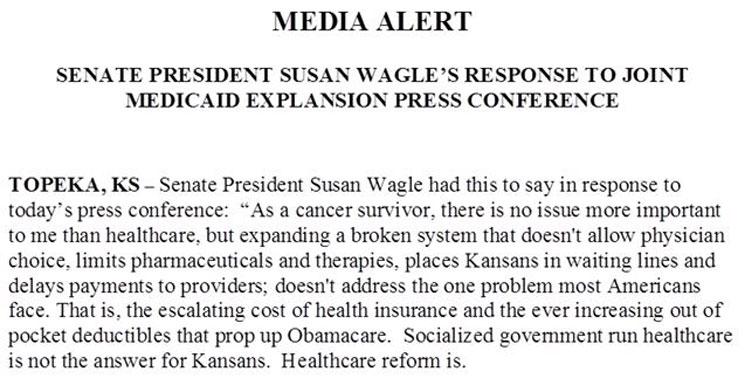 The Senate GOP is split on the new Medicaid expansion compromise. Sen President Wagle just issued a statement criticizing the agreement reached between Gov. Kelly and Senate Republican Leader Jim Denning. #ksleg