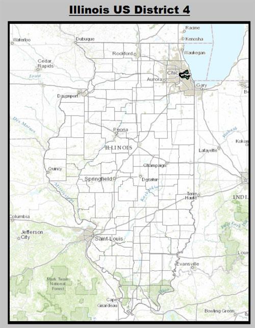 Today, I'm looking at Illinois's 4th Congressional District. IL-04 is absurdly gerrymandered, includes part of Cook County, and has been represented by Democrat Jesús "Chuy" García since January 2019. Garcia lives in the "Little Village" area of Chicago: