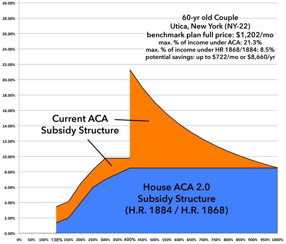 Under H.R. 1868 / 1884, again, they'd pay no more than 8.5% in premiums, reducing their net premiums from $1,200/month down to as little as $480/month, a reduction of a whopping $722/month or over $8,600/year.
