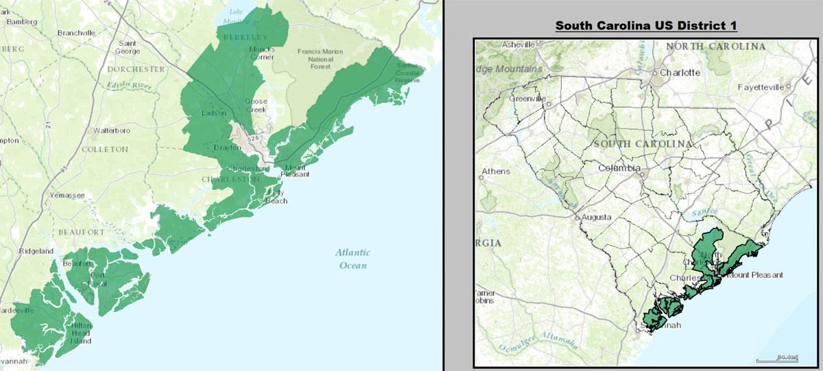 Today, I'm looking at South Carolina's First Congressional District. SC-01 stretches across the southeast coast of the state, and includes Charleston and Myrtle Beach, along with a bunch of coastal island communities. It's been represented by Democrat Joe Cunningham (who lives in Charleston) since 2019; he's the first Democrat to represent the area in decades: