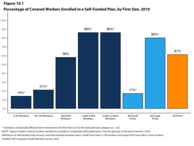 ...But lots of firms don’t actually buy insurance for their employees. Instead, larger firms usually “self-insure,” meaning that they pay for their employees’ health expenses themselves. (Odds are that, if you’re employed, you work at a self-insured firm—61% of people with employer-sponsored coverage do.) And ERISA clarifies that employers, when they self-insure, aren’t to be treated as insurers.