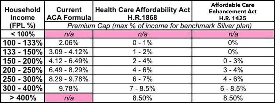 This is basically an even more enhanced version of the already beefed-up Advance Premium Tax Credit subsidy formula already found in H.R. 1868/1884 (which I've been pushing for for over a year now)...and as H.R. 1868/1884 already did, it also finally kills off the 400% FPL subsidy cliff.