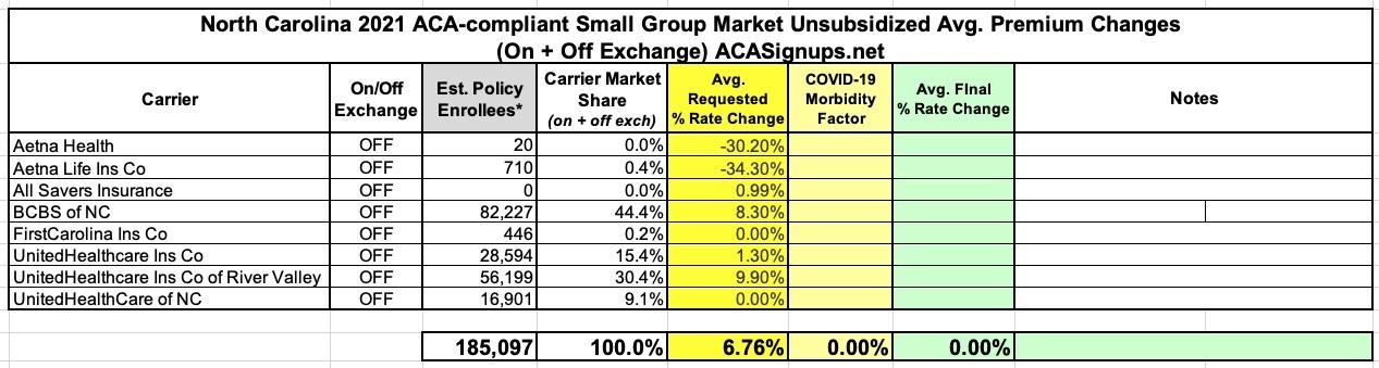 North Carolina: Preliminary avg. 2021 #ACA premiums: +4.0% indy market, +6.8% sm. group