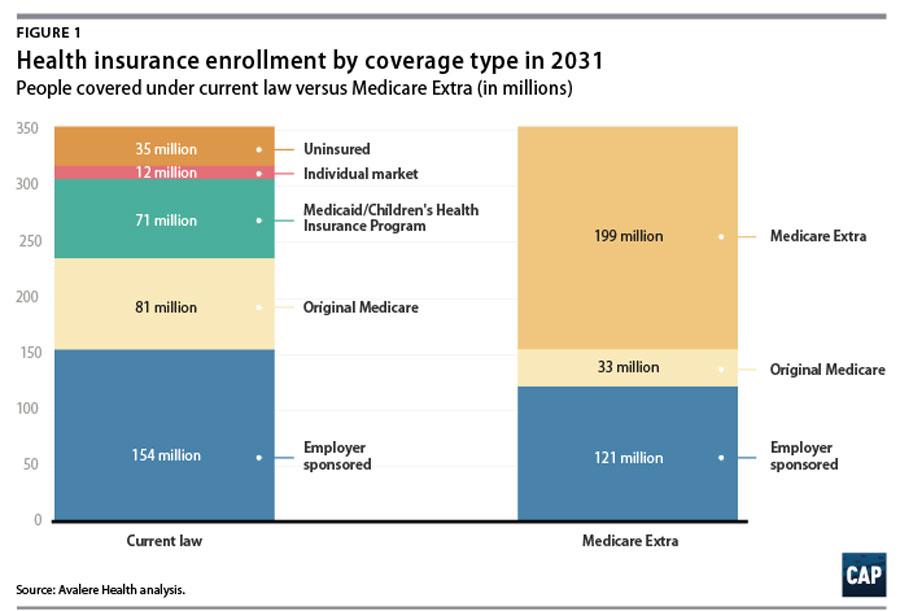 CAP's "Medicare Extra" set out to solver (or at least mostly mitigate) both of these issues: The massive federal spending increase a "pure" universal single payer system like Med4All would impose as well as the massive public/political resistance and resentment which would inevitably occur from forcing over 300 million people to move to such a new program.