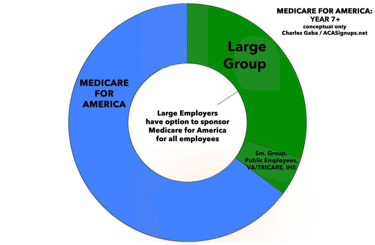 This is very similar to my own "Year 7+" projection of what the Psychedelic Donut would look like under either Medicare Extra or Medicare for America when you account for one major distinction between the two: CAP's plan would allow those enrolled in the current Medicare program to stick with it if they really wanted to or to switch over to MedExtra...whereas under Med4America, the existing Medicare population would be automatically shifted over but would get to keep paying their existing Medicare premium rates...which amounts to around 55 million older Americans receiving a hell of a bargain.