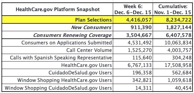 Renewals of existing enrollees are way up: 6,407,578 vs. 5,753,210 last year (without NJ/PA). That's 11.4% higher.