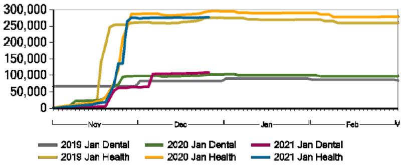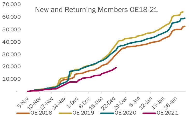 - Through Dec. 22, over 277,000 members had enrolled for January, a 6% percent reduction from last year at this time.