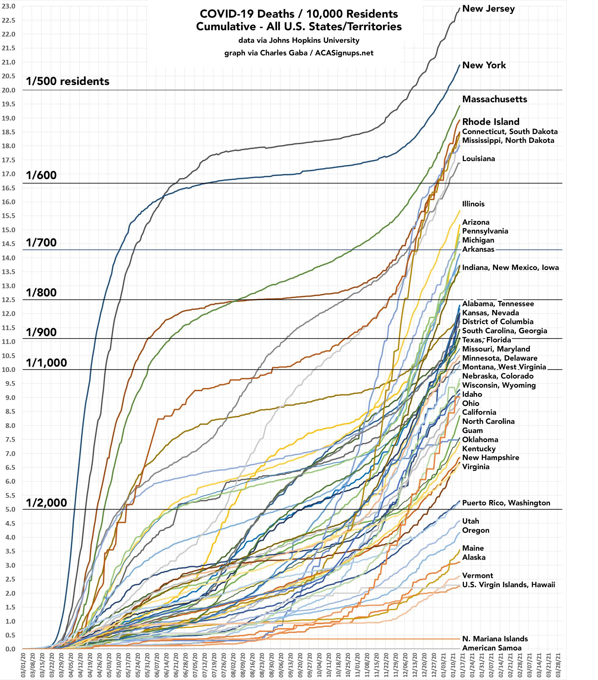 It's killed more than 1 out of 600 residents of Massachusetts, Rhode Island, Connecticut, North & South Dakota, Mississippi & Louisiana.