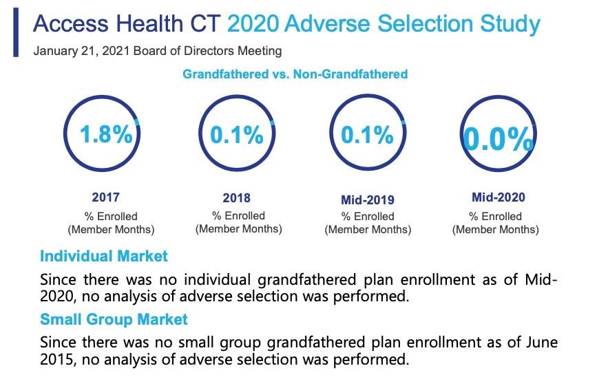 Well, it's January 2021 now, and in Connecticut at least, it looks like the Grandfathered market is finally completely dead (it was down to just 2,100 or so as of 2018). Connecticut never allowed Grandmothered plans in the first place, so that's that.