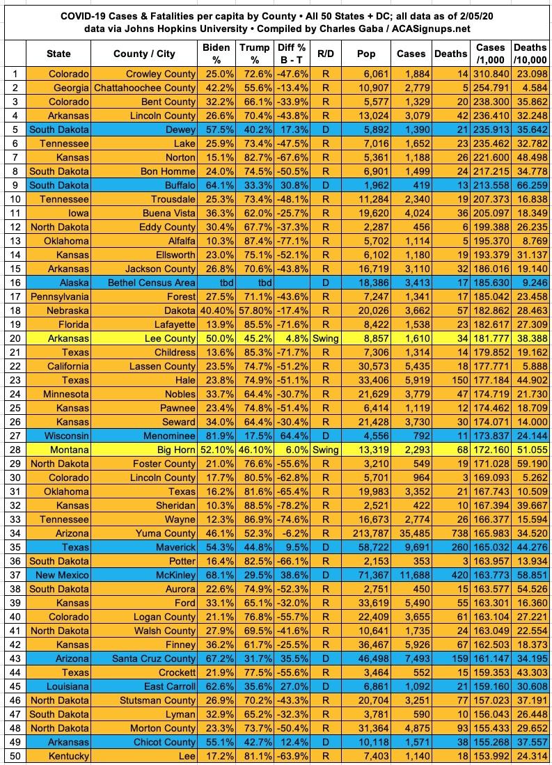 Weekly Update: Which COUNTIES have the highest per capita rates of #COVID19 cases and deaths?