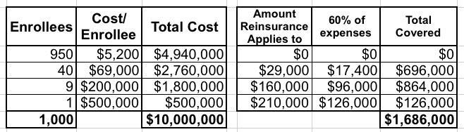 - Add it up and the reinsurance program would cover $1,686,000 out of the $10,000,000 grand total...or around 17% of all medical expenses for the entire pool.