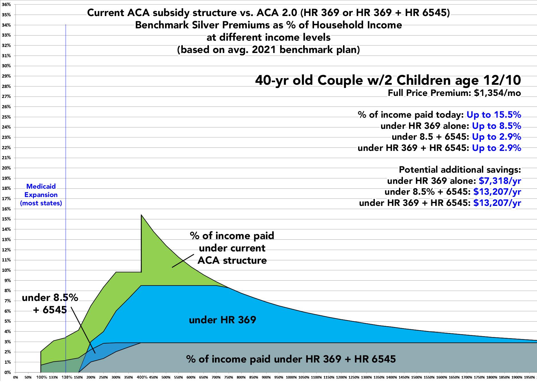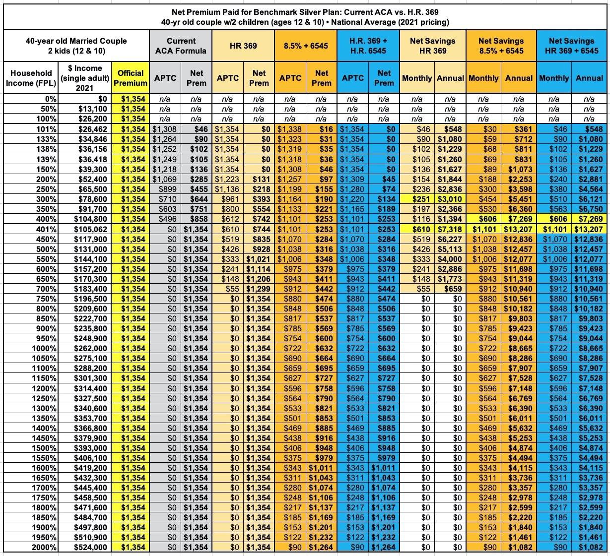 FIRST, the American Rescue Plan (which basically mirrors HR 369) is a damned good upgrade over the current APTC formula. It's already been passed and covers things through the end of 2022.