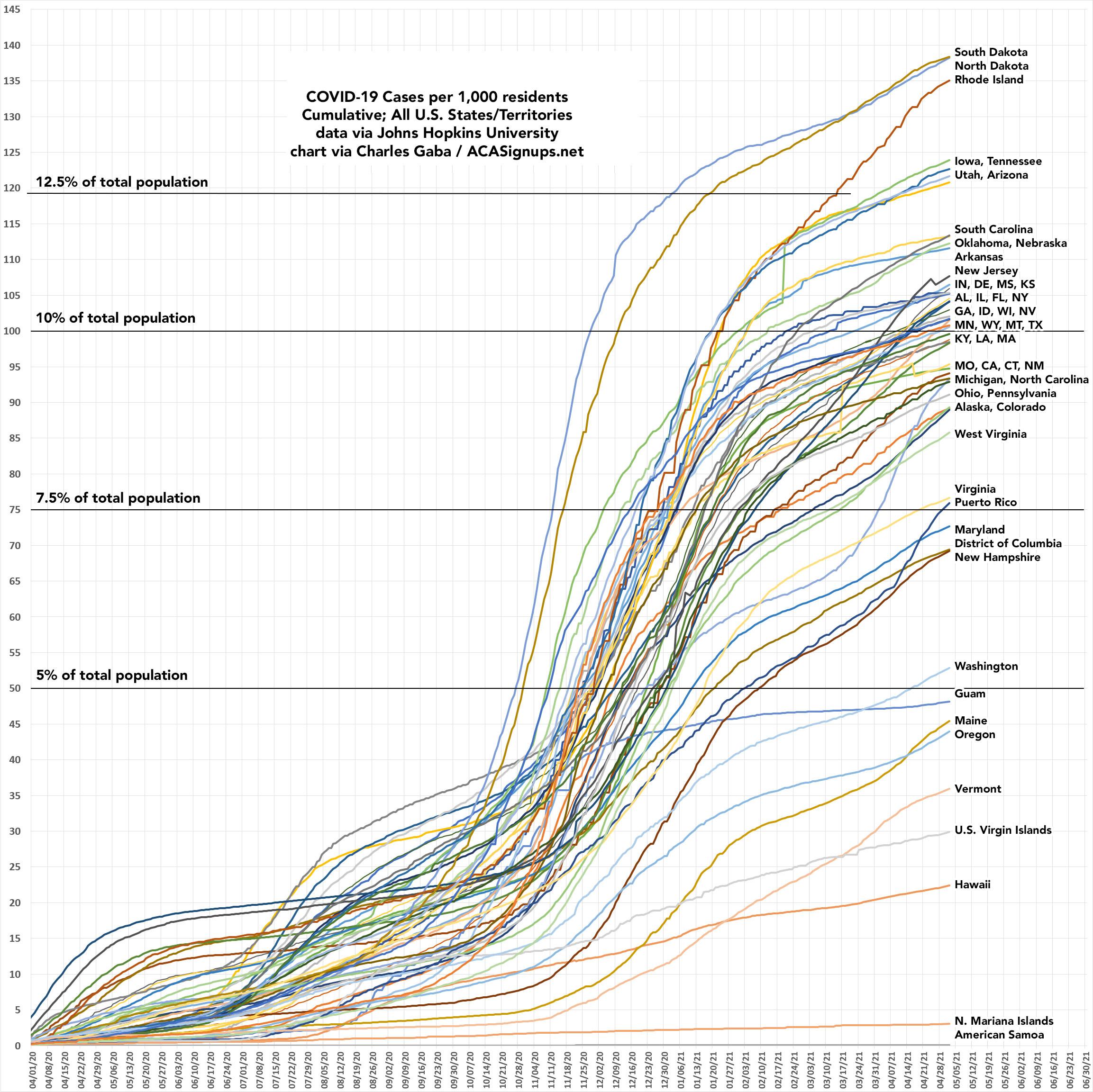 NOTE: Starting this week, I've updated the spreadsheet to account for the official 2020 Census Bureau populations of every state. In most cases this has nudged their case & mortality rates down slightly.