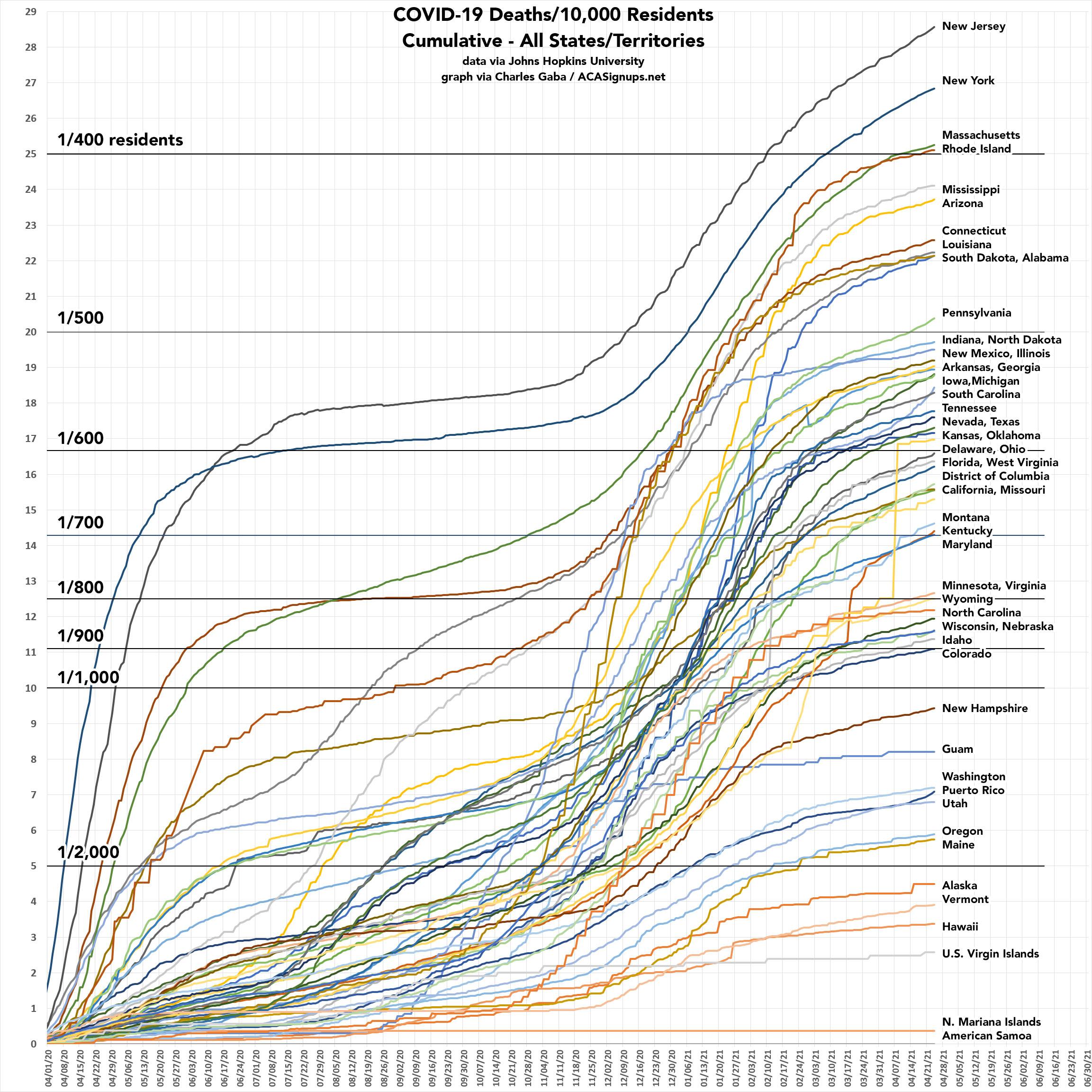 COVID-19 has killed over 1 out of every 350 residents of New Jersey.