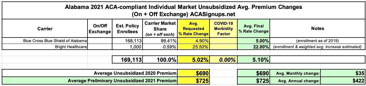 Alabama: *Approved* avg. 2021 #ACA premiums: +5.1% indy; +3.1% sm. group