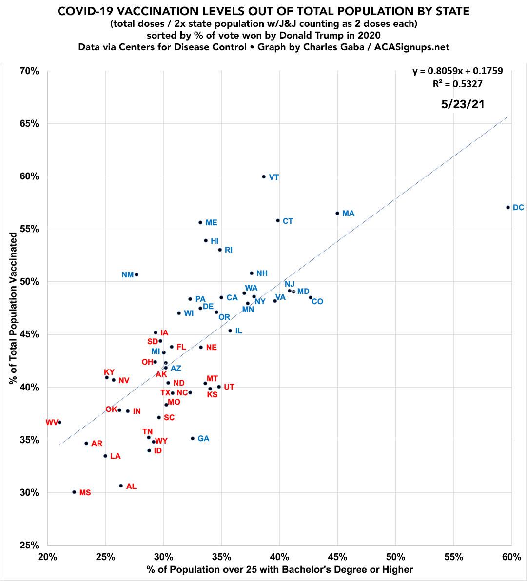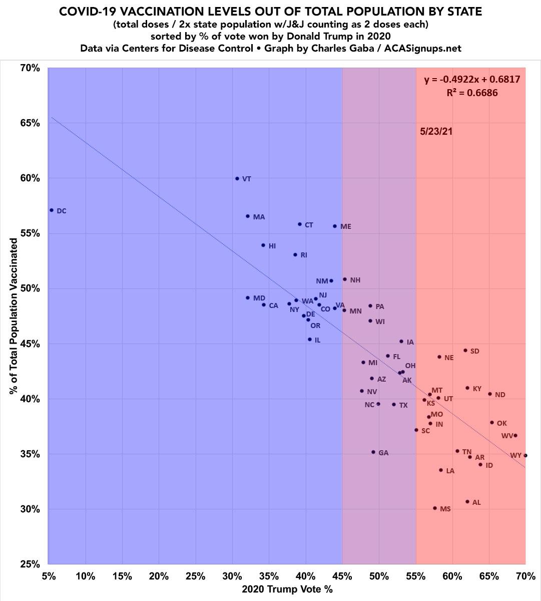 I then adjust each state by counting the single-dose Johnson & Johnson vaccine twice (since it's effectively similar to getting 2 Pfizer or Moderna doses).
