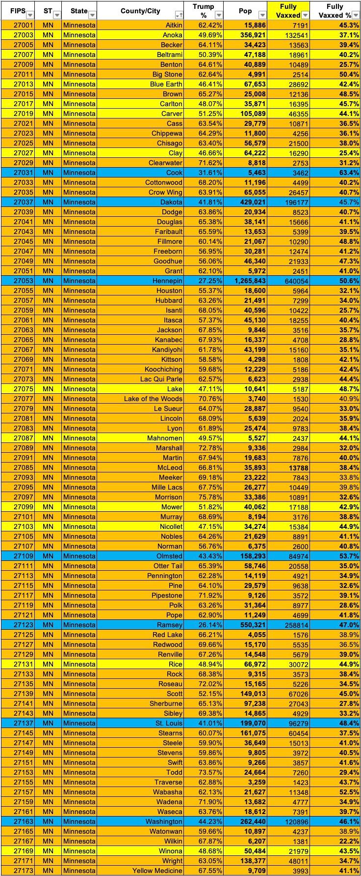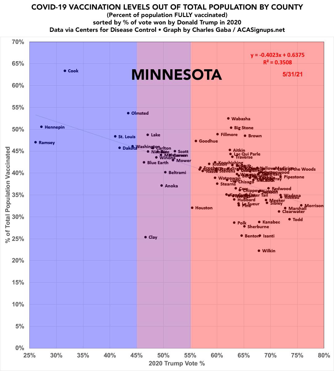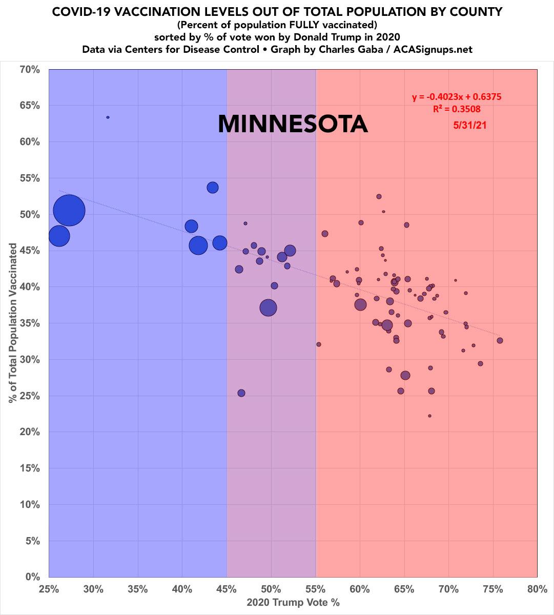Minnesota: #COVID19 vaccination rates by county & partisan lean