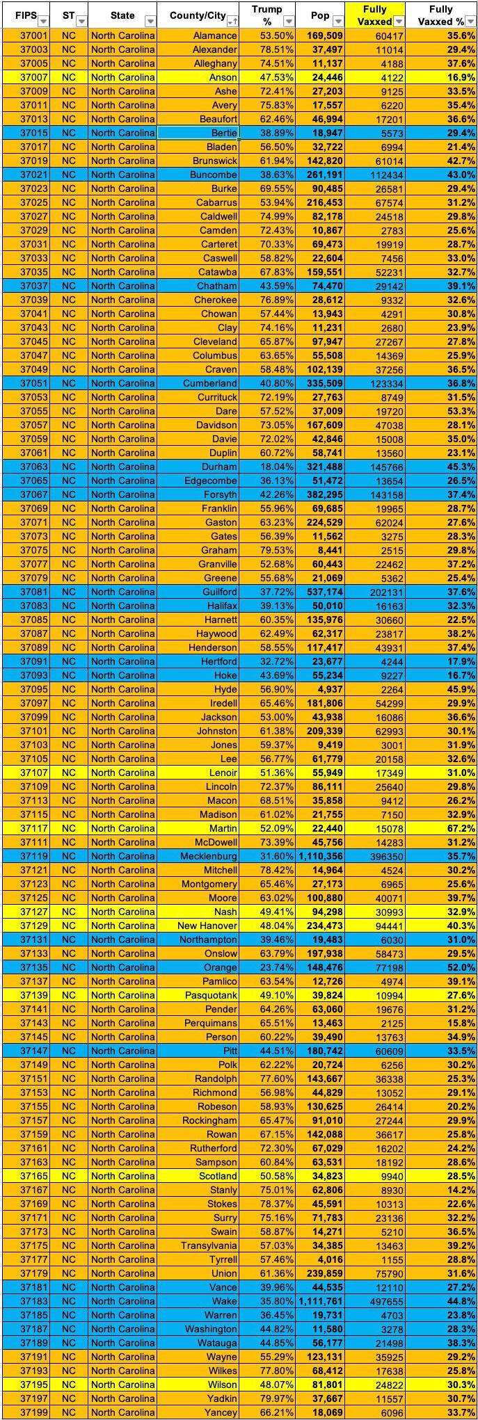 North Carolina: #COVID19 vaccination rates by county & partisan lean