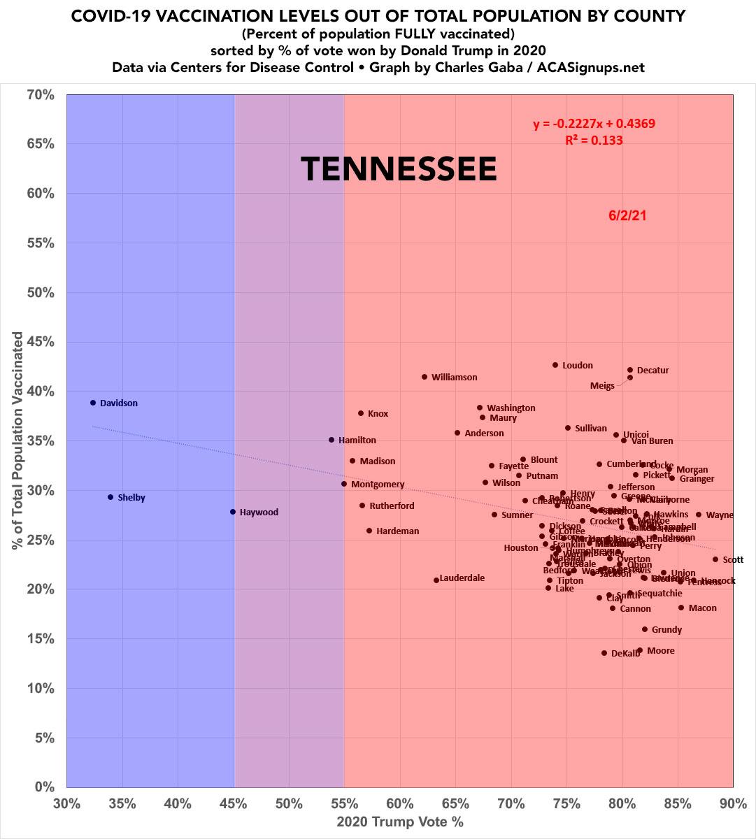 Tennessee: #COVID19 vaccination rates by county & partisan lean