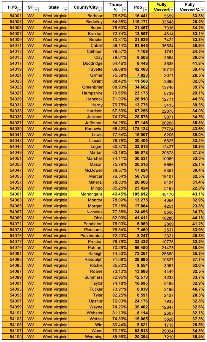 West Virginia: #COVID19 vaccination rates by county & partisan lean