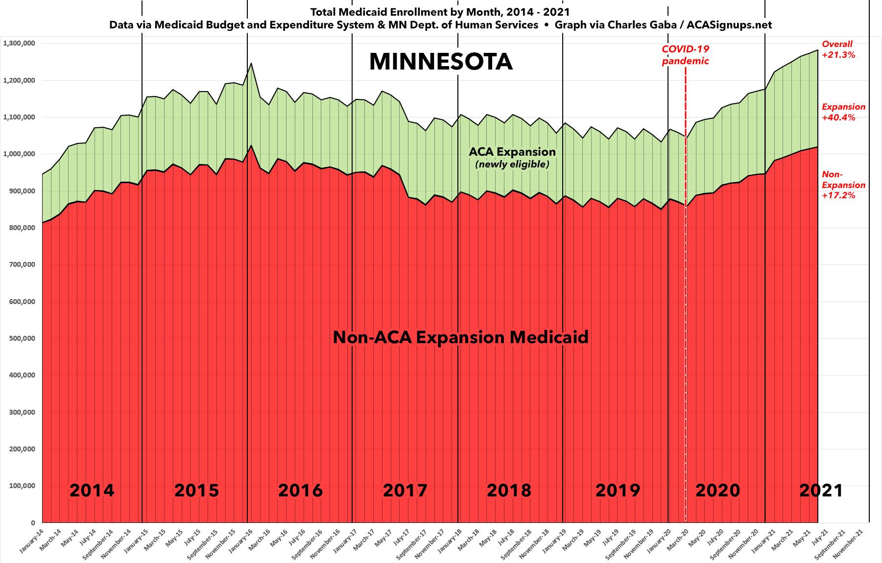 Minnesota: Medicaid expansion enrollment up 40% since COVID hit; total Medicaid up 21%