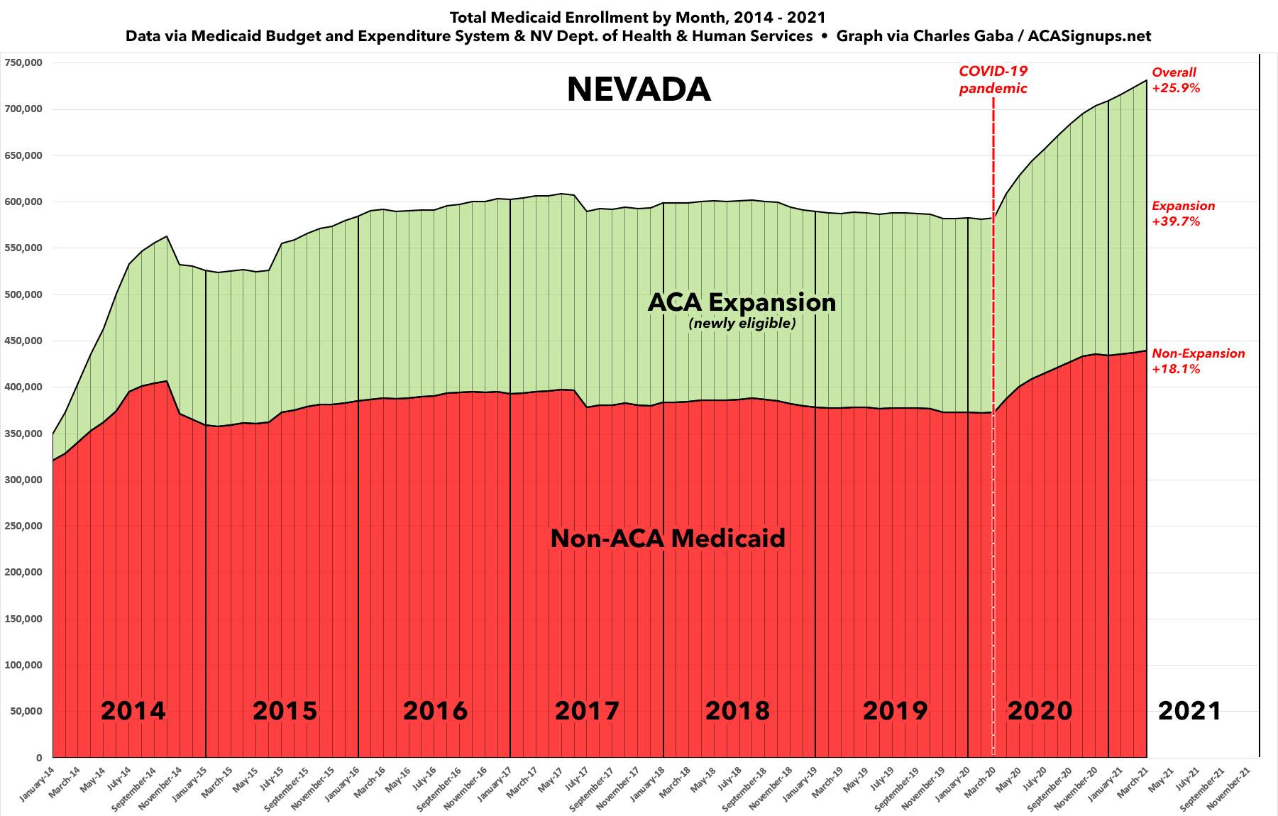 Nevada: Medicaid expansion enrollment up 40% since COVID struck; total Medicaid up 26%