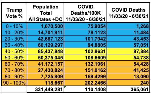 As you can see, from Election Day through the end of June, the situation completely reversed itself: The COVID-19 death rates in the reddest counties began to run higher than in the bluest counties...as much as 2.66x as high, in fact.