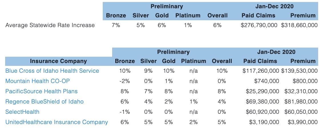 UPDATE 10/19/21: The Idaho DOI has issued their final rulings, and the approved average rate filings are somewhat different from the preliminary requests...except that the statewide weighte average ends up being exactly the same according to the DOI anyway, which is a bit odd...