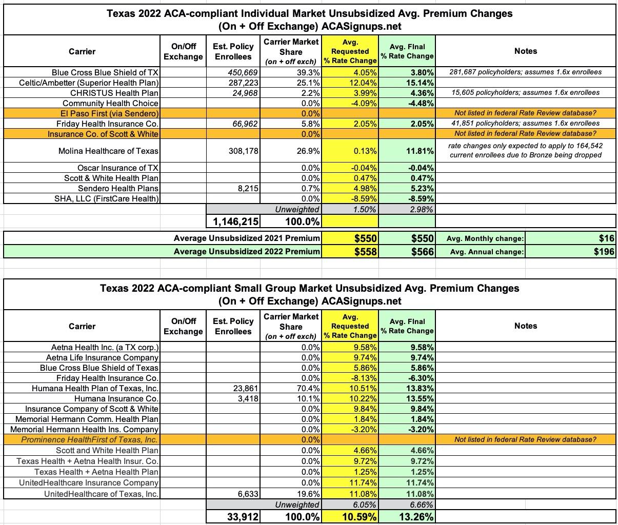 *APPROVED* Avg. 2022 #ACA Rate Changeapalooza! AK, CA, GA, HI, IL, KS, LA, MA, MS, MO, NE, NH, TX, WY
