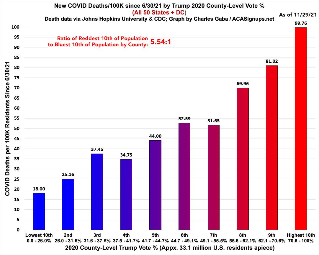 As you can see, case rates since June are 2.16x higher in the least-vaccinated tenth of the country than in the most-vaccinated tenth...slightly lower than a few weeks ago.